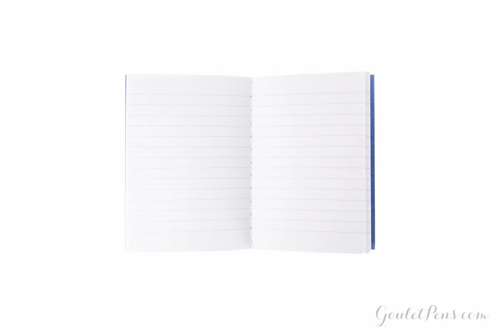 This small notebook features 36 sheets (72 pages) of white super-smooth ruled paper and reinforced stitched binding. Each sheet has 13 lines, spaced 6mm apart, with a blank margin at the top. Comes in one of four assorted bold colors.