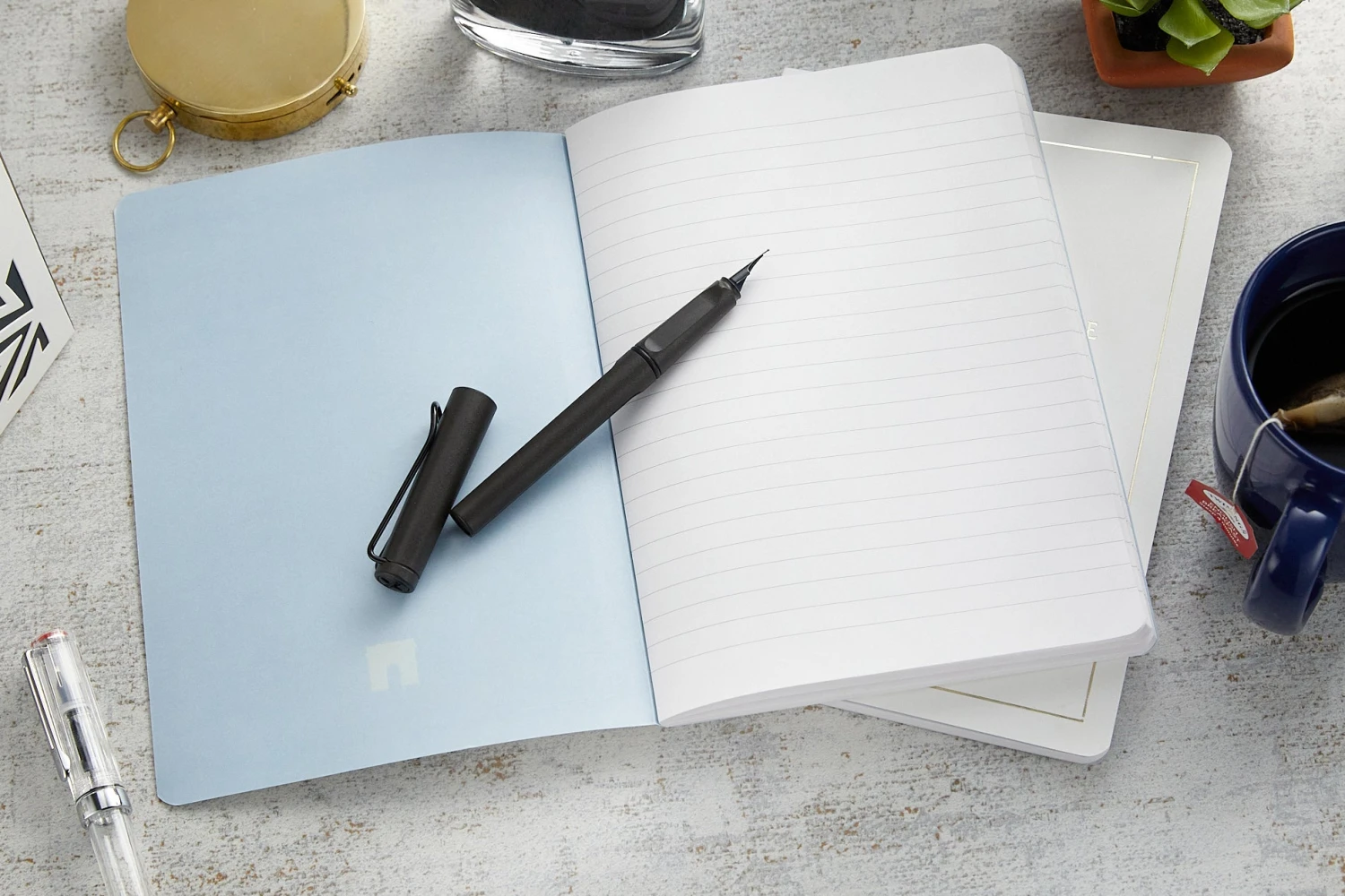 This A5-sized notebook features 48 sheets (96 pages) of 8mm lined white 90g Clairefontaine Triomphe paper. Both fountain pen and marker friendly, the paper is super smooth, acid-free, and pH neutral. The notebook has a sewn spine binding, yet also lays flat!