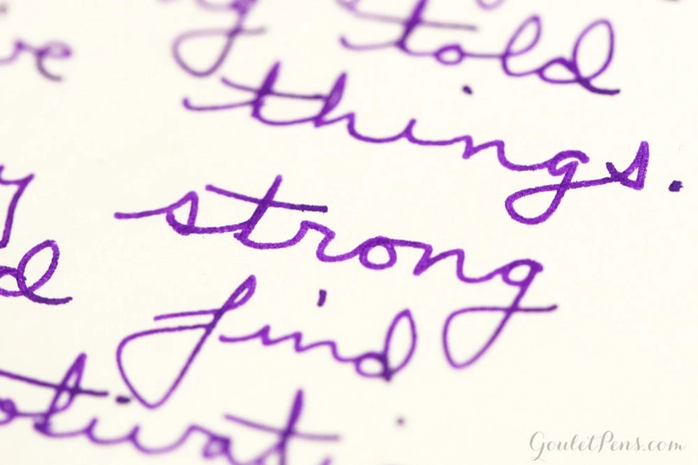 De Atramentis fountain pen inks are exclusively handmade in Germany by Dr. Franz-Josef Jansen, and come in a 45ml glass bottle. This is a rich purple color that leans pink.