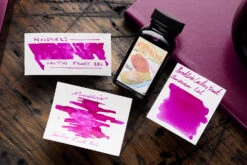 This ink works best with broader nibs on high quality paper to really see the shine.
