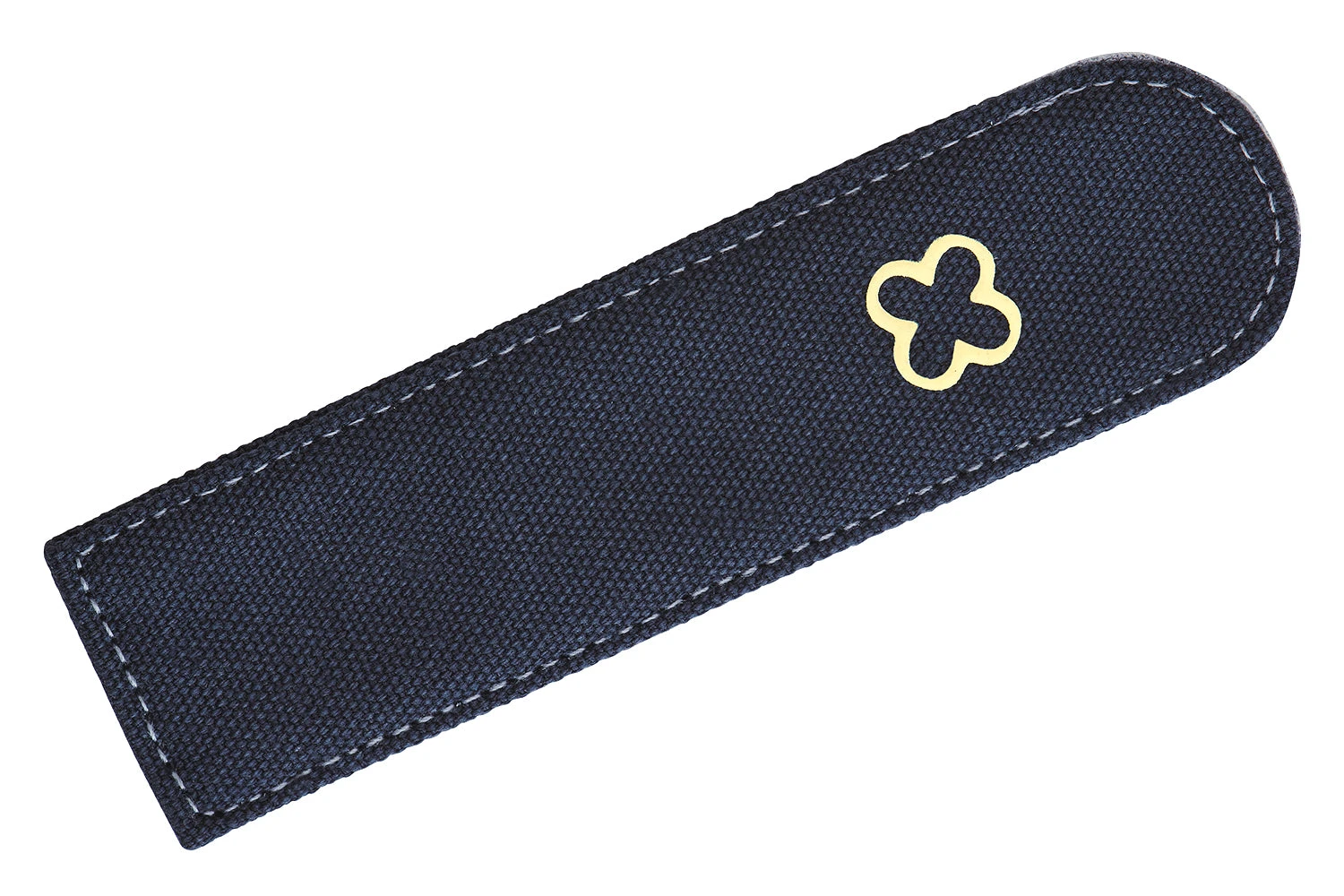 This navy blue canvas pen case holds 1 pen snug in its own fabric-covered slot. The sleeve is perfect for those on-the-go who need a quick and easy way to keep your most precious cargo safe, secure, and stylish.
