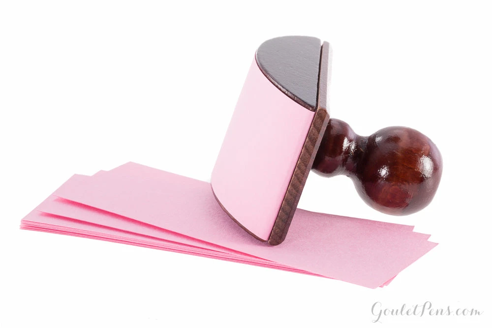 10 sheets of pink Herbin ink blotting paper, pre-cut and made to fit the Herbin wooden rocker blotter. Each sheet measures 4.7″ x 1.75″.