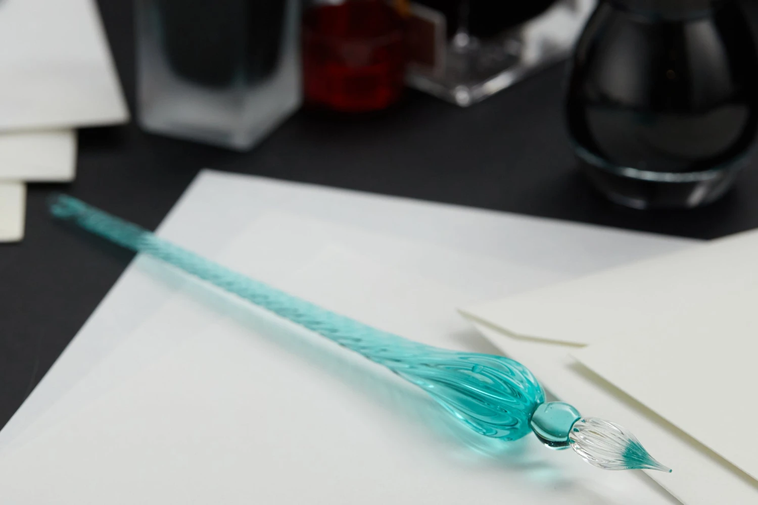 This hand-blown Herbin round glass dip pen is made in the tradition of 16th-century Venice. Each pen is an individual work of art. The fine glass tips are twisted in a light spiral to hold the maximum amount of ink. Glass dip pens are great for both fountain pen ink or calligraphy/dip pen ink!