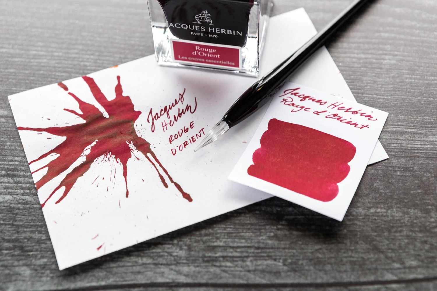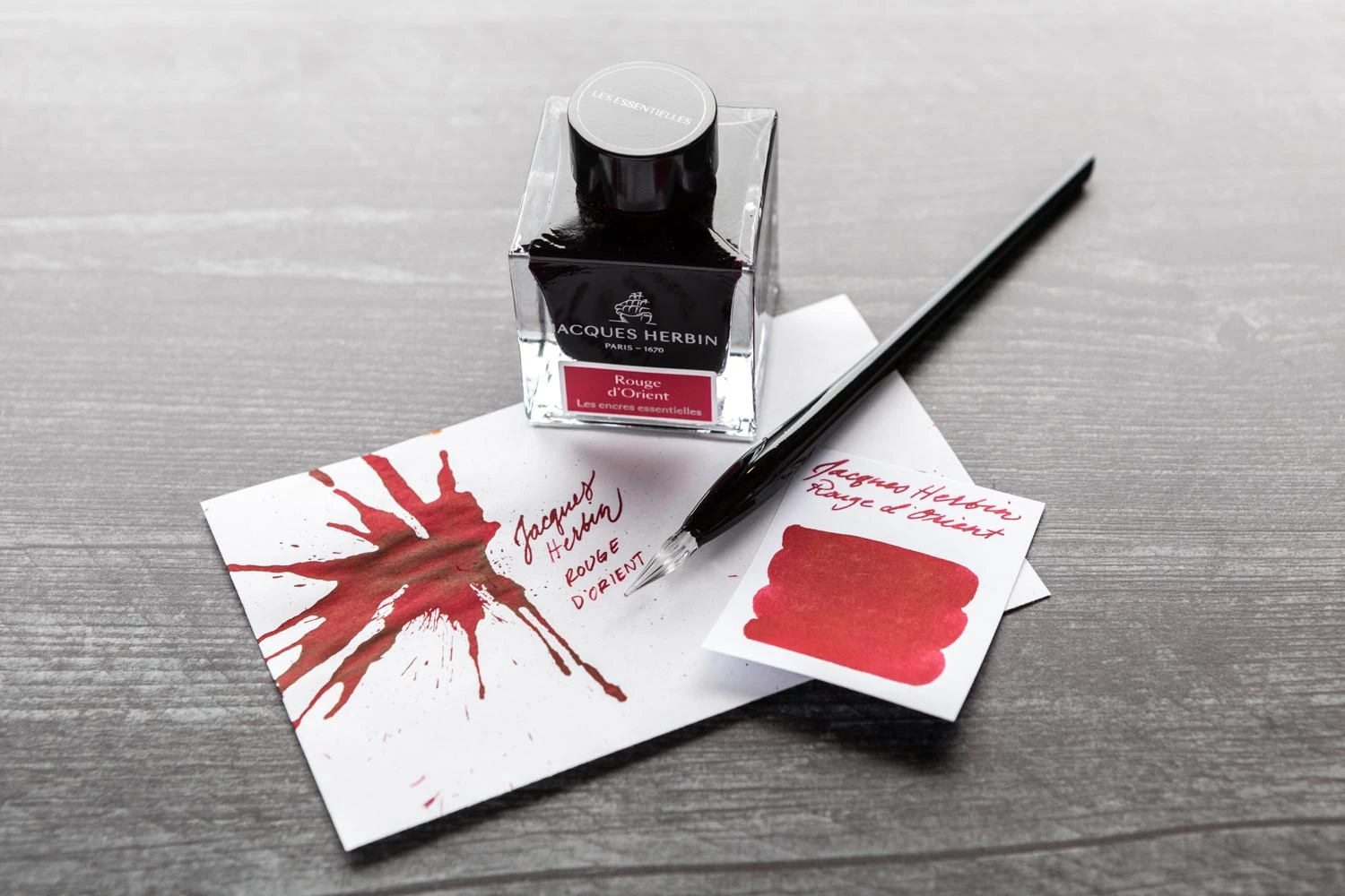 Set in a beautiful 50ml glass ink bottle, Jacques Herbin Rouge d’Orient is at the same time a dark and vibrant shade, and has a royal intensity. The color red is the symbol of power in the ancient past, happiness in China, or passion today.
