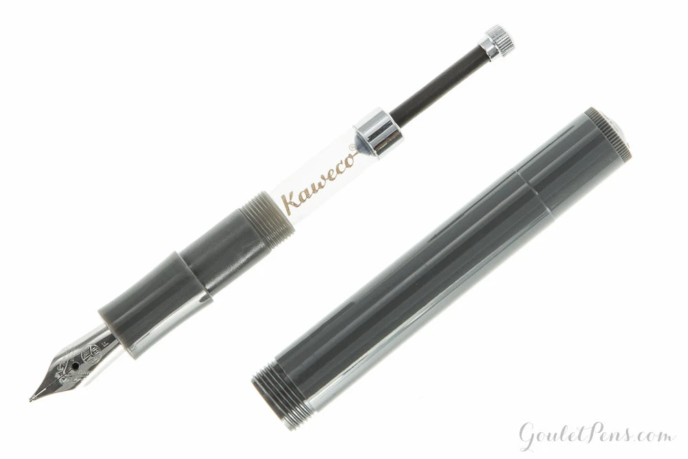 This small piston Kaweco converter will fit in all Kaweco Sport pens (AL Sport, Brass Sport, Classic Sport, ICE Sport, and Skyline Sport), allowing you to easily use bottled ink instead of ink cartridges. It does not fully fit into the Liliput. It holds up to 0.5ml of ink.