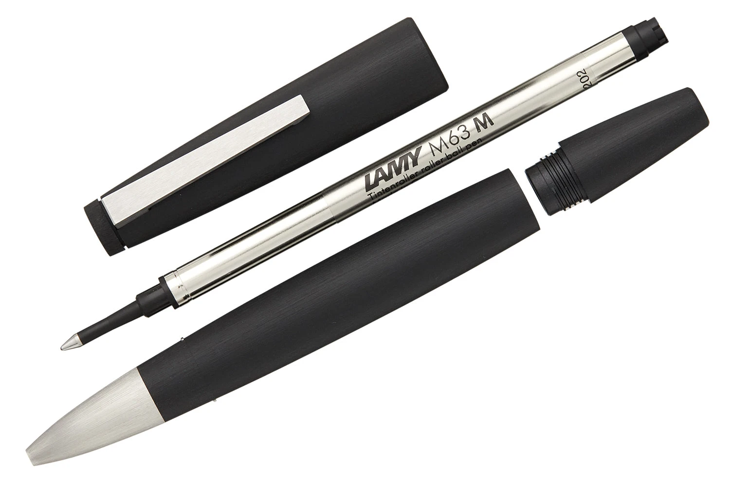 It accepts the proprietary LAMY M63 rollerball refills. One black refill in medium is included.