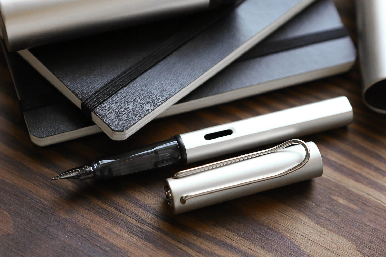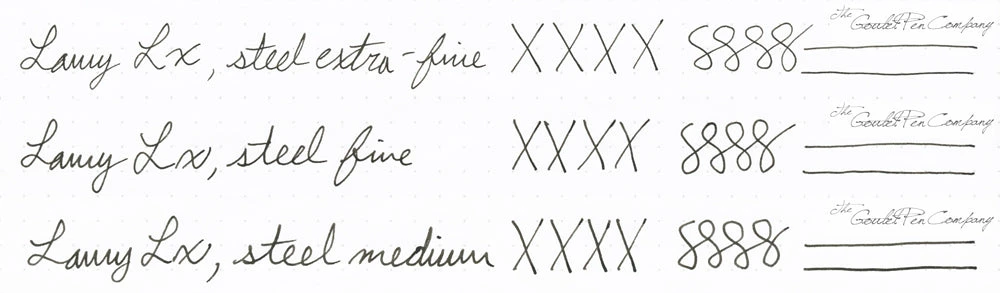 There are lot of subtle details on the Lx as an enhancement over the similar AL-star model, including matching metal accents on the cap end and barrel end with a shiny diamond polish, a glossy LAMY logo on the barrel, and the laser engraving on the nib. While slightly different in appearance than the other LAMY steel nibs, they are indeed swappable as well.