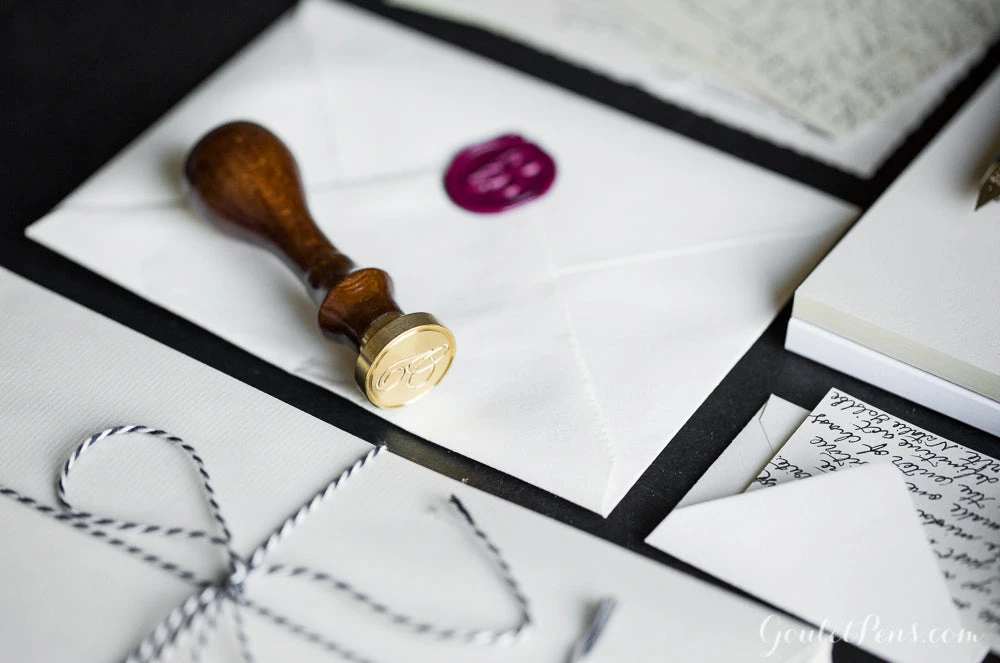 These crisp, “classic” laid-surface Original Crown Mill flat cards have a deckled edge. The note cards are banded and boxed with matching white tissue lined envelopes. The cards are just right for a quick “hello” or “thank you” note. Professionally print your name or monogram for a unique and personal stationery staple. This set contains 25 ivory deckled flat 4″ x 6″ notecards and 25 ivory lined envelopes, set in a gold foil stamped storage box. Made in Belgium.