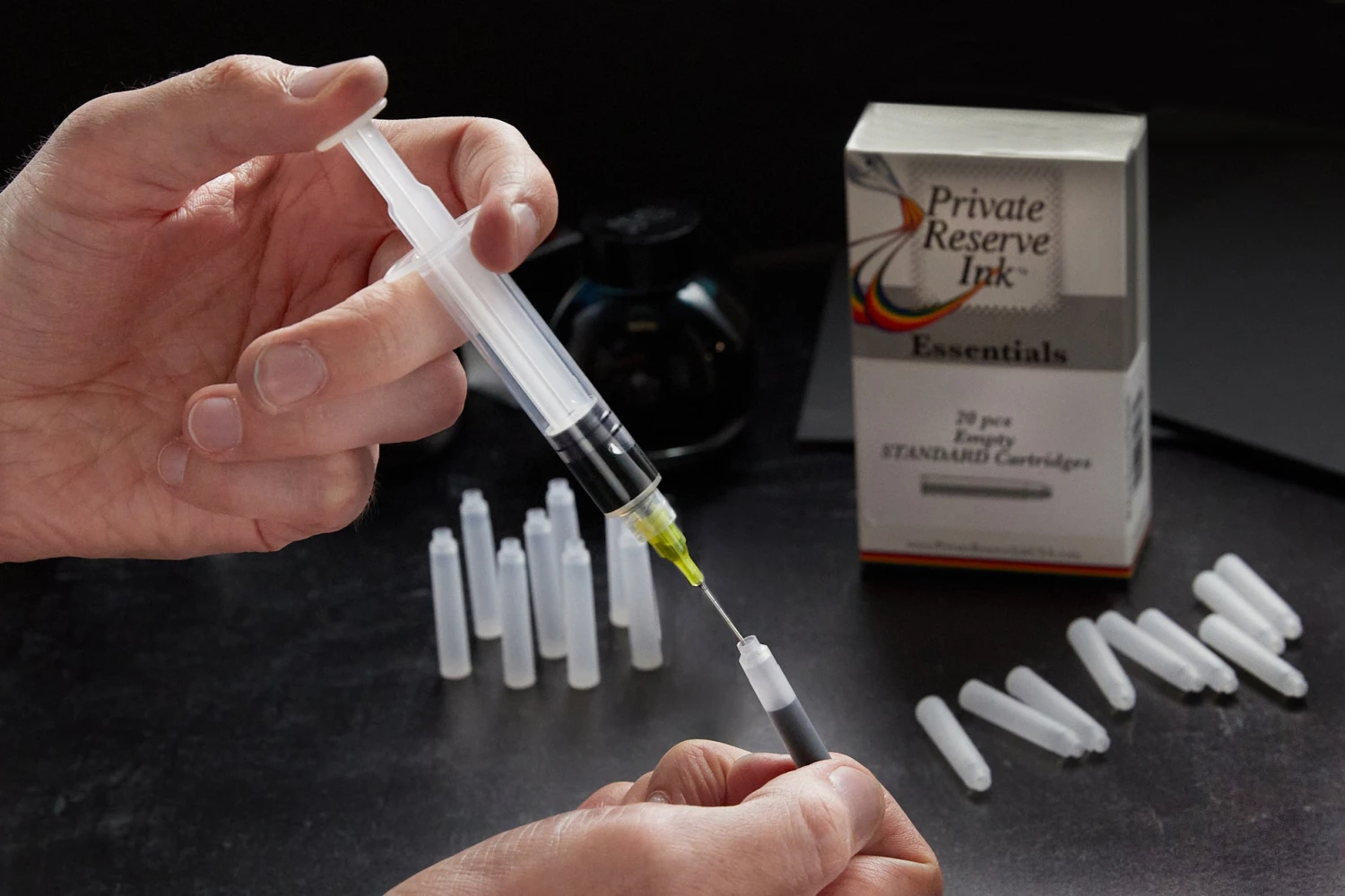 You can use an ink syringe (sold separately) to fill these cartridges from your favorite bottled ink or sample.