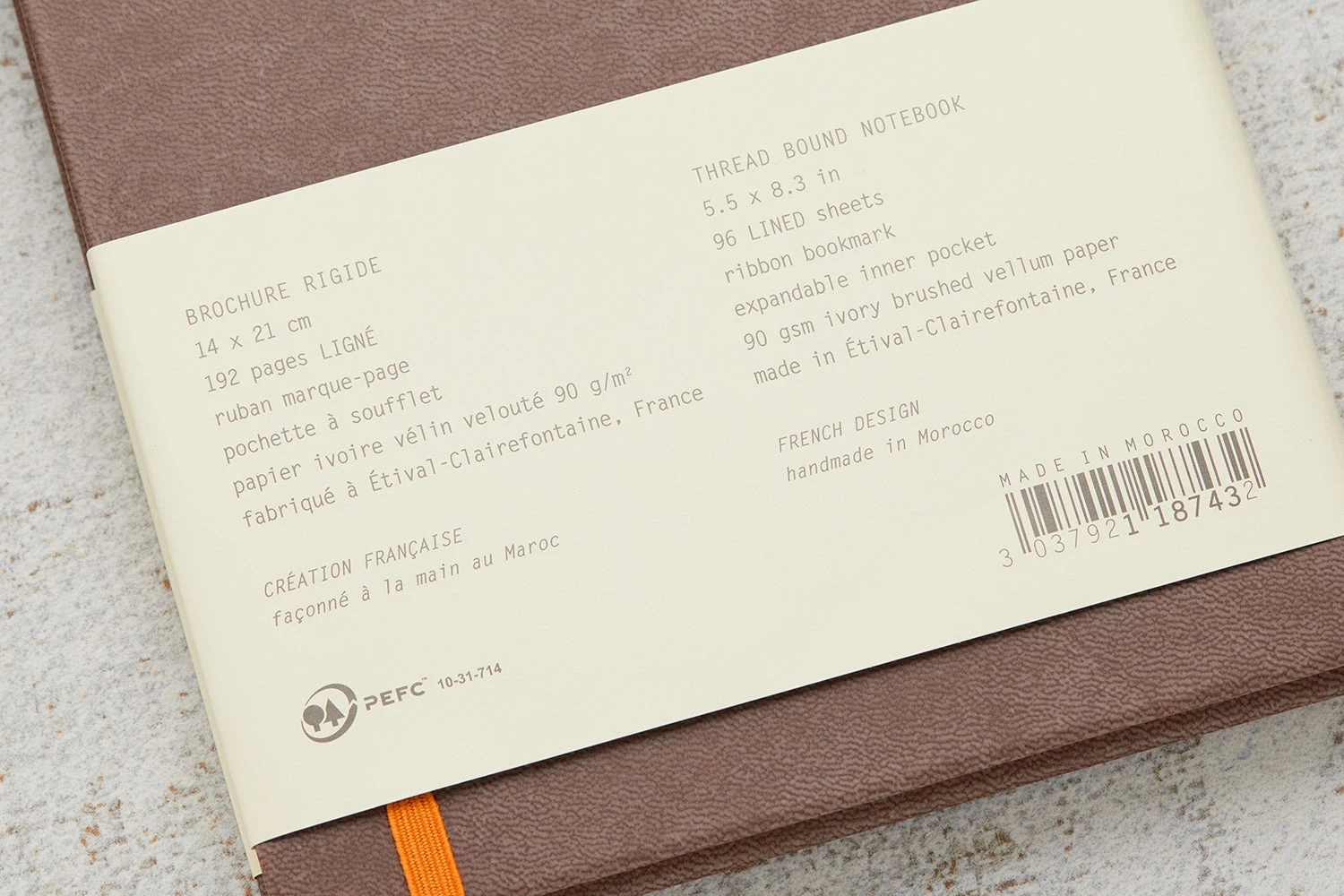 Known as the “Webbie”, the Rhodia Webnotebook is the choice for fountain pen users and everyday note taking. This A5-sized notebook has a chocolate brown leatherette hard cover. It is filled with 96 sheets (192 pages) of premium 90g ivory Clairefontaine ruled paper. Lines are spaced 7mm apart. Other features include a ribbon marker, an orange elastic closure, an inner pocket for notes and cards, and elegant round corners.