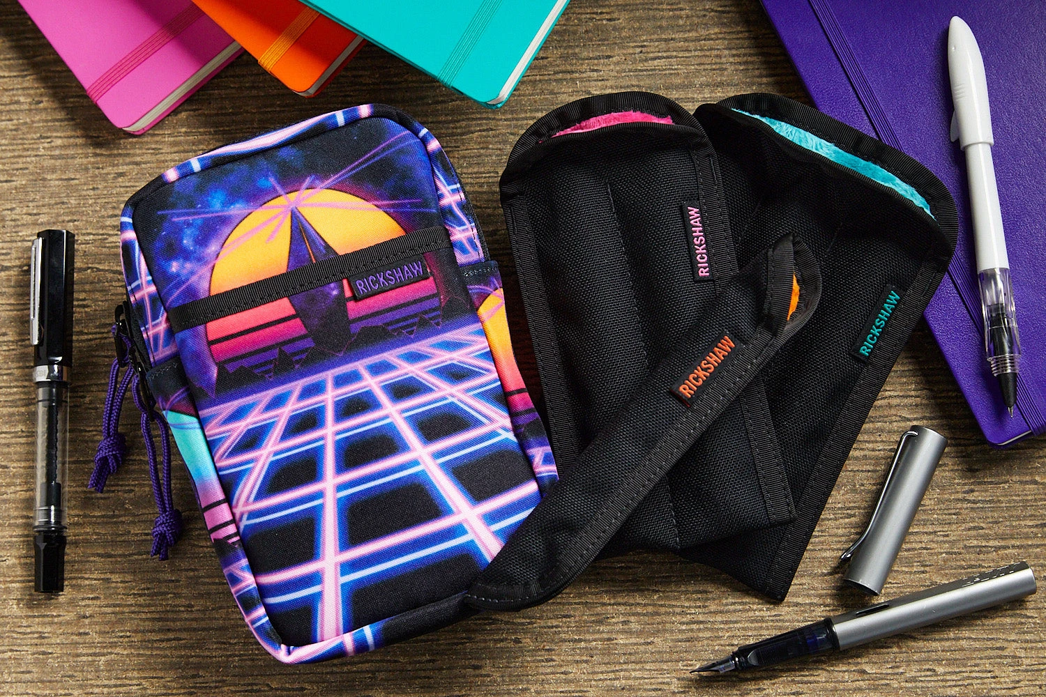 Rickshaw Bagworks pen sleeves are made in San Francisco. The exterior is Rickshaw’s DigiPrintâ„¢ polyester canvas, and the interior is Royal Plushâ„¢ polyester. Black nylon binding and thread. All materials are colorfast and machine washable.