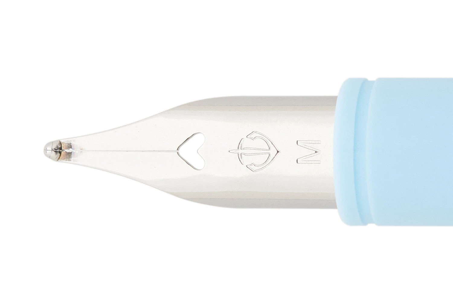 This Medium steel nib unit has a light blue accent. It does not include the pen barrel or the optional attachable ink reservoir; both are available separately.
