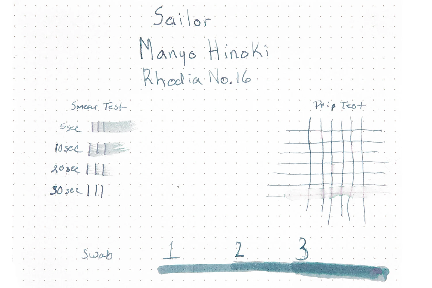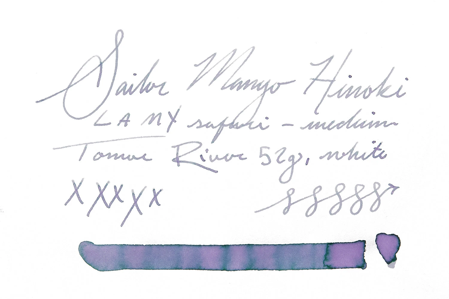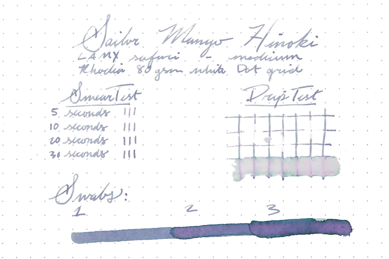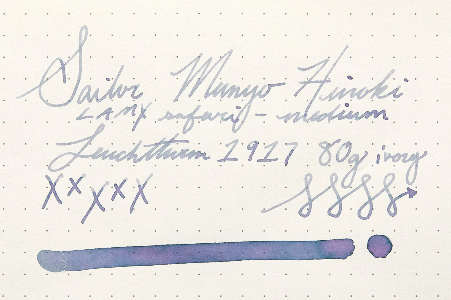 Hinoki is a soft blue-grey that shades out to purple and green. As part of the third release in the Manyo ink series, Hinoki is a dual shading ink, which means it shades different colors than its base colors when pooling into areas of high and low concentration on the paper. Dual shading inks are really fascinating.