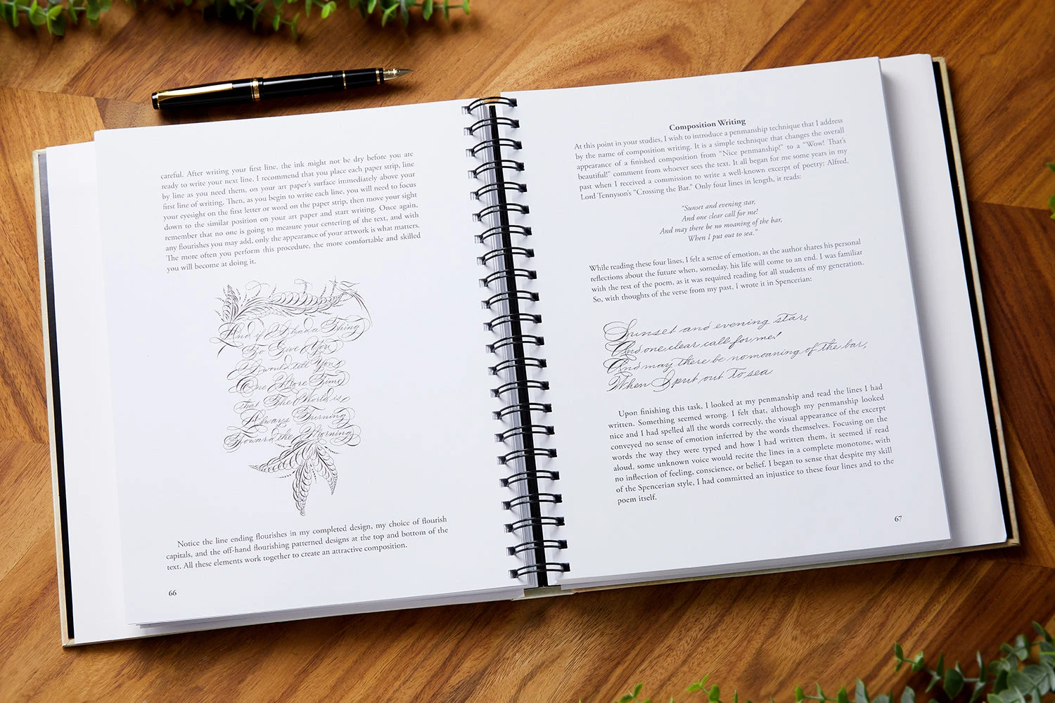 • Methods of bird and quill designs, filigree patterns, and composition flourishing