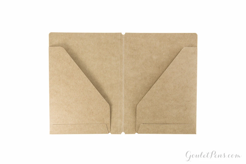A file folder made of kraft paper. Insert it into the rubber band of your passport-size Traveler’s Notebook.