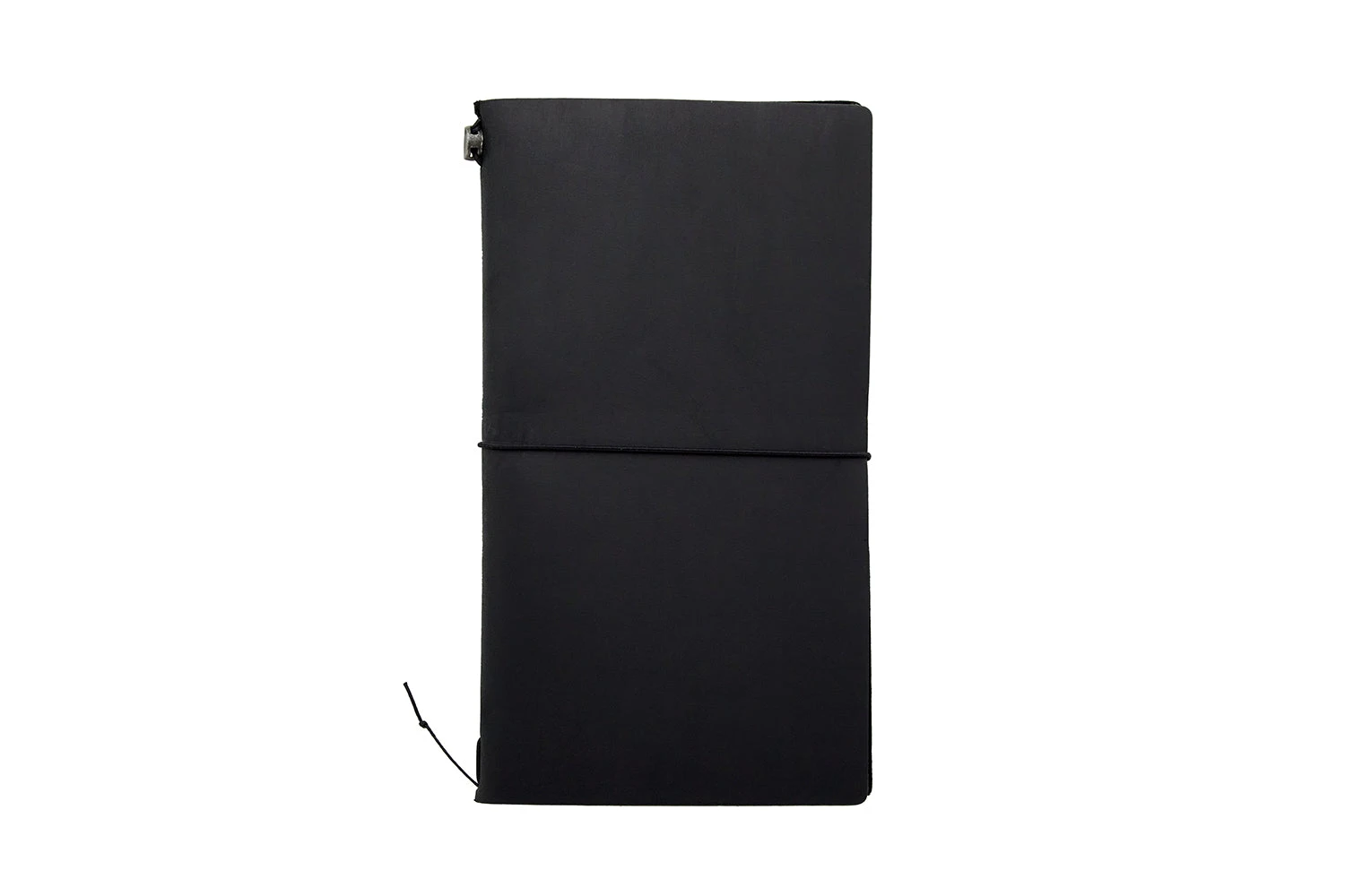 This is the starter’s kit of the regular-sized Traveler’s Notebook. It comes in a package which contains a black cowhide leather cover, a blank notebook, a cotton case, and a spare closure rubber band (of a different color). The simple and rustic texture is self-assertive in an unobtrusive way.