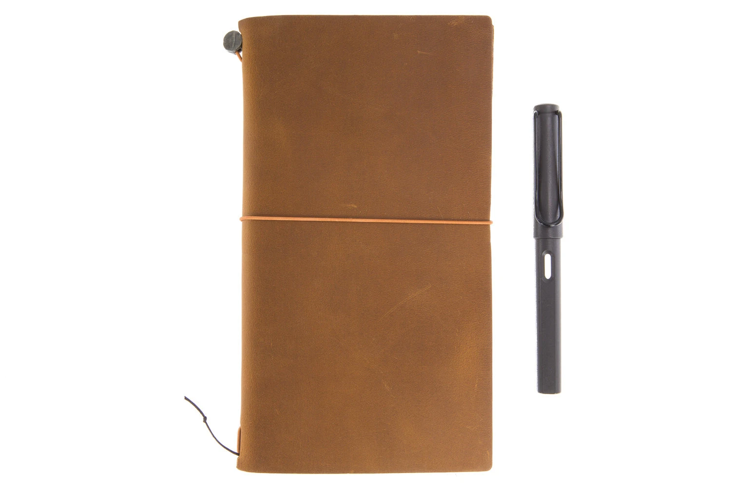This is the starter’s kit of the regular-sized Traveler’s Notebook. It comes in a package which contains a tan cowhide leather cover, a blank notebook, a cotton case, and a spare closure rubber band (of a different color). The simple and rustic texture is self-assertive in an unobtrusive way.